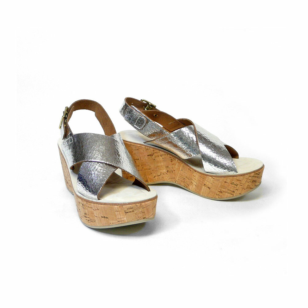 ファビオルスコーニ FABIO RUSCONI コルク ウェッジソール クラックレザー メタリック サンダル DORA299ウェッジヒール コンフォートサンダル 厚底 サボ ゴールド シルバー 22.5cm 23cm 23.5cm 24cm 彼女 妻 女性 人気 レディース シューズ 靴 S/S