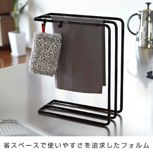 キッチンに合わせやすいブラックとホワイトのオシャレなモノトーンカラーのふきん掛けです。