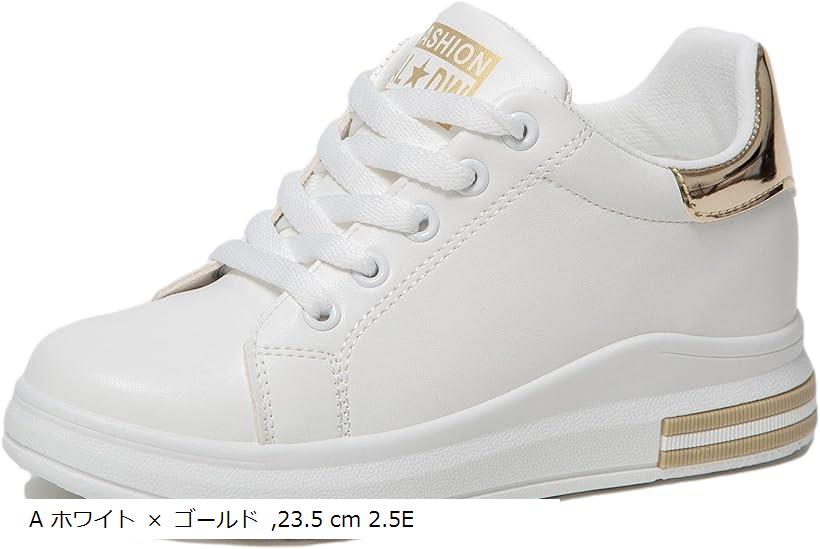 カエナリエ レディース 厚底 ローカット スニーカー 白 レースアップ インヒール ライン 入り 37 23.5 ホワイト×ゴールドライン 2019モデル(ホワイト×ゴールドライン 2019モデル, 23.5 cm 3E)