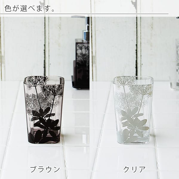 タンブラー「SARINA(サリナ)」【コップ カップ 歯磨き ハミガキ うがい アクリル サニタリー 洗面所 ハブラシ うがいコップ 北欧 植物柄 花柄 ギフト プレゼント 白 茶 クリア ブラウン シンプル シック おしゃれ】