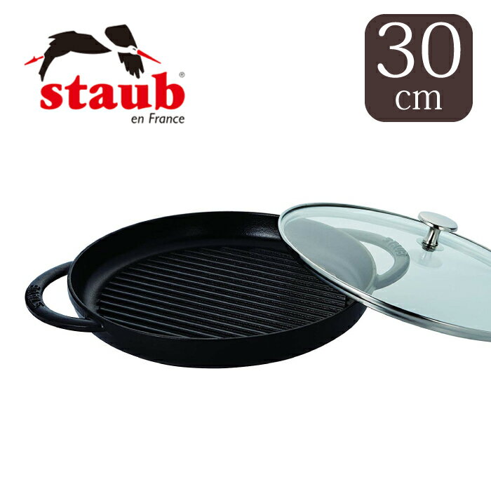 STAUB グリルパン 30cm 全2色ストウブ ガラス蓋つき フランス製STAUB GRILL PANピュアグリル 鍋 フライパンドームガラス蓋 ほうろう 耐熱ガラスブラック グレー【smtb-ms】10787
